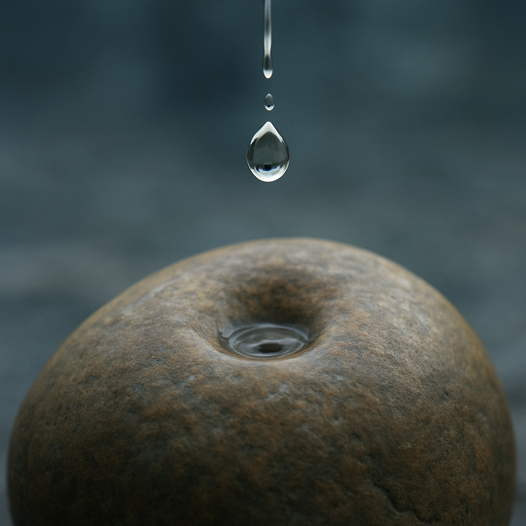 In a world that often glorifies quick fixes and big breakthroughs, it’s easy to overlook the quiet, steady power of consistency. This image says it best: a bucket of water thrown onto a rock does nothing—but a single drop, falling day after day, can carve a hole. This is the essence of healing.